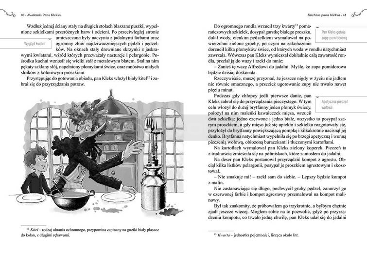 Wydanie Akademii Pana Kleksa kompletne bez skrótów i cięć w treści. W tym wydaniu znajdziesz odpowiedzi na pytania z podręcznika - pewniak na teście, czyli wskazanie zagadnień, które zwykle pojawiają się w pytaniach z danej lektury we wszelkich testach sprawdzających wiedzę, a także w podręcznikach i na klasówkach. Zawiera bardzo szczegółowe streszczenie oraz drugie skrócone, ułatwiające szybkie przygotowanie się przed lekcją. Opracowanie zawiera plan wydarzeń, wnikliwie wyjaśnioną problematykę oraz szerokie charakterystyki bohaterów.