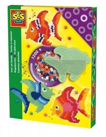 Kolorowe koraliki, które po ułożeniu na specjalnej podstawce i zaprasowaniu łączą się ze sobą. W ten sposób otrzymujemy trwałą mozaikę - "koralikowy obrazek". W zestawie koraliki i podkładka w kształcie rybki. Zestaw dla dzieci od 5 roku życia. Koraliki nie zawierają PCV. Instrukcja: na podkładce należy z koralików ułożyć wzór, następnie przeprasować koraliki żelazkiem przez załączony papier, zaprasowany element trzeba umieścić pod ciężkim przedmiotem na 2-3 min i gotowe!