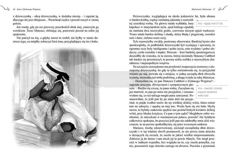 Wydanie Ani z Zielonego Wzgórza kompletne bez skrótów i cięć w treści. W tym wydaniu znajdziesz odpowiedzi na pytania z podręcznika - pewniak na teście, czyli wskazanie zagadnień, które zwykle pojawiają się w pytaniach z danej lektury we wszelkich testach sprawdzających wiedzę, a także w podręcznikach i na klasówkach. Zawiera bardzo szczegółowe streszczenie oraz drugie skrócone, ułatwiające szybkie przygotowanie się przed lekcją. Opracowanie zawiera plan wydarzeń, wnikliwie wyjaśnioną problematykę oraz szerokie charakterystyki bohaterów.