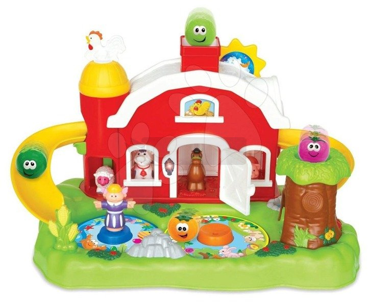 Niesamowita farma, na której dziecko odkryje wiele atrakcji, dźwięków i melodii, pozna zwierzątka i nauczy się puszczać z różnych zjeżdżalni warzywne piłeczki. Puszczając piłeczkę przez komin lub drzewko może ona spaść różnymi drogami na jeden z dwóch obracających się, kolorowych "talerzy" z obrazkami, a wtedy słychać przyjemną muzyczkę.